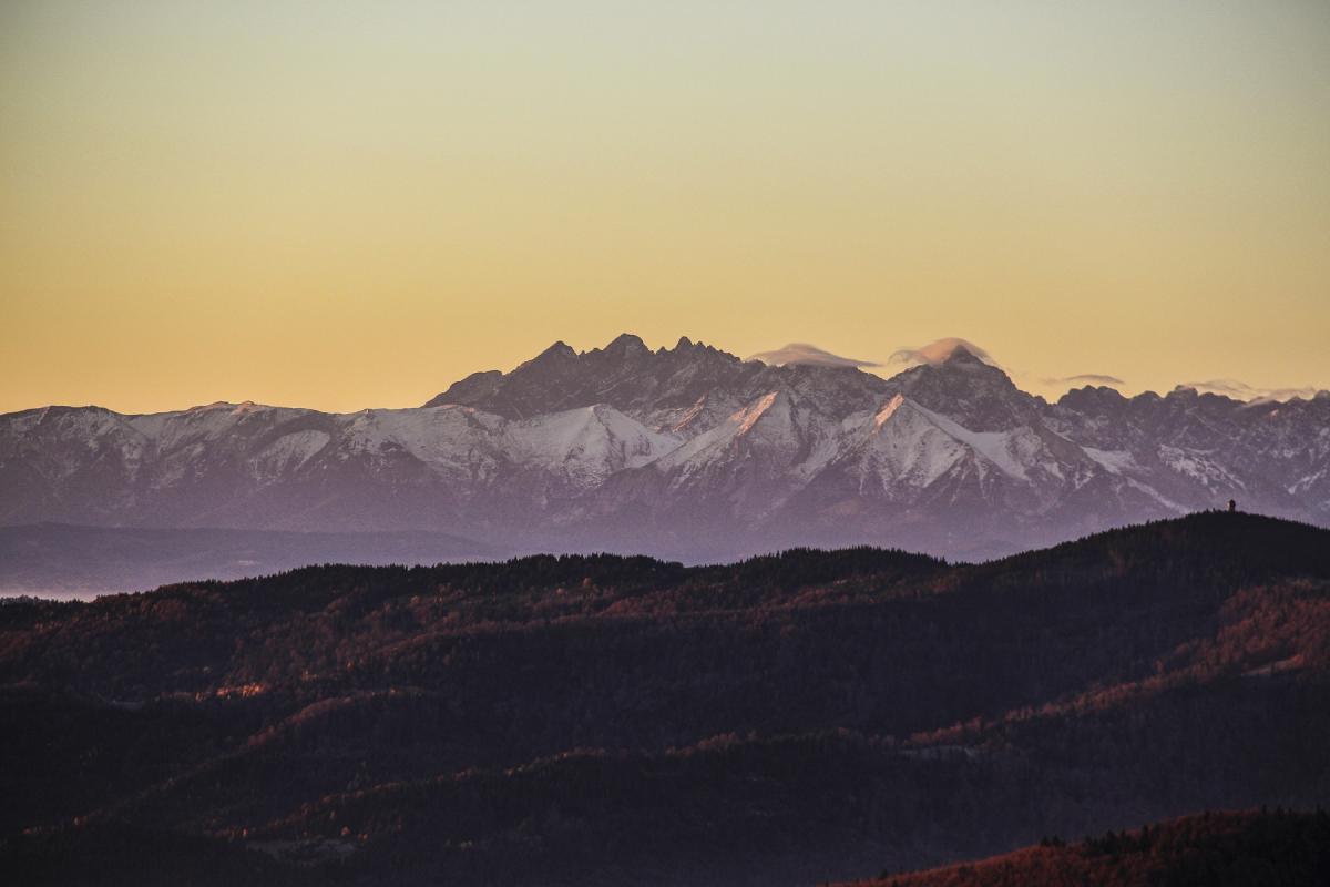 Otwarto ją w 2008 roku, stawiając nówkę-sztukę w miejscu starej wieży triangulacyjnej, która zbutwiała i zawaliła się w latach 80. XX w. Wszystko fajnie, ale gdy stajemy przed schodami… odstraszają nas biało czerwone taśmy i napis o jej zamknięciu „(…) do odwołania z powodu remontu” (stan na maj 2020). Cóż. Nie są to pierwsze odwiedziny u Pani M., więc szybko dopowiem z pamięci, czym można się zachwycać w najwyższej kondygnacji. W pierwszej kolejności dostajemy na tacy Beskidy: Wyspowy, Żywiecki i Sądecki. Wprawione oko, przy odpowiedniej aurze, wyłapie też Małą Fatrę czy Góry Choczańskie. Ale bez wątpienia głównym daniem u naszej gospodyni są Gorce i piętrzący się za nimi mur tatrzański. Palce lizać i wręcz wypada prosić o dokładkę.