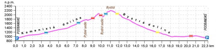 niebieski: Podbańska (Podbanské) – Pyszniańska Przełęcz (Pyšné sedlo) 3 h 50 min ↑ 2 h 50 min ↓