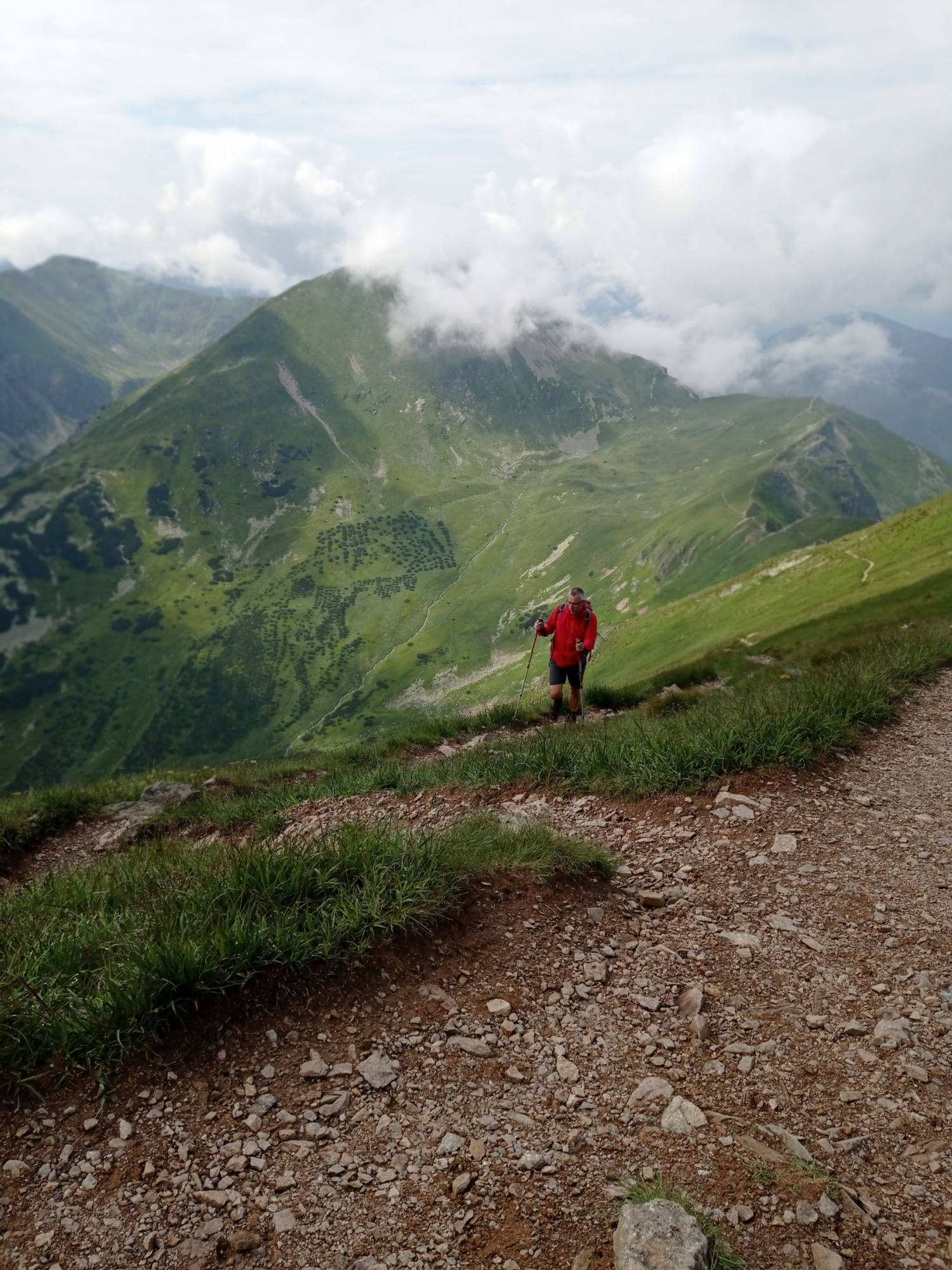 Początkowo zachwyceni niecodziennym, nawet jak na góry, widokiem (w polskich Tatrach tylko z oddali widziałam pojedyncze kozice), po chwili zaczynamy się powoli wycofywać. Na szczęście kozica wraca do swojego stada, po czym razem ze współtowarzyszami znika w wypełnionej mlekiem dolinie. My natomiast idziemy dalej w stronę Błyszcza. Jednak nie na sam szczyt – choć prowadzi tamtędy wydeptana ścieżka. Trzymamy się czerwonych oznakowań i chwilę przed wierzchołkiem odbijamy w prawo, trawersując zbocze góry. Chmury rozpraszają się, ukazując po kolei najpiękniejsze szczyty tej części Tatr.