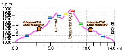 czerwony, zielony, niebieski: Kopa Kondracka – Hala Kondratowa – Kuźnice 2 h 45 min ↓ 3 h 15 min ↑