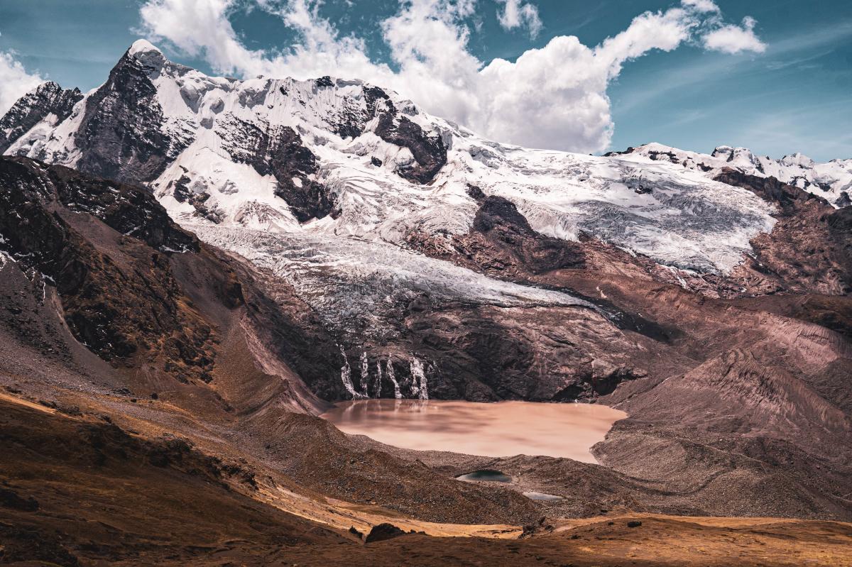 Właśnie w trakcie tego przedszlakowego spa pierwszy raz chmury odsłoniły nam północną ścianę Ausangate. Sześciotysięcznik wcinał się w niebo potężnym skalnym murem. Co bardziej połogimi miejscami spływały małe lodowce, ale większość stanowiła goła skała. Wejście na ten szczyt jest poważnym wyzwaniem wysokogórskim, udaje się to zaledwie kilku zespołom w roku.