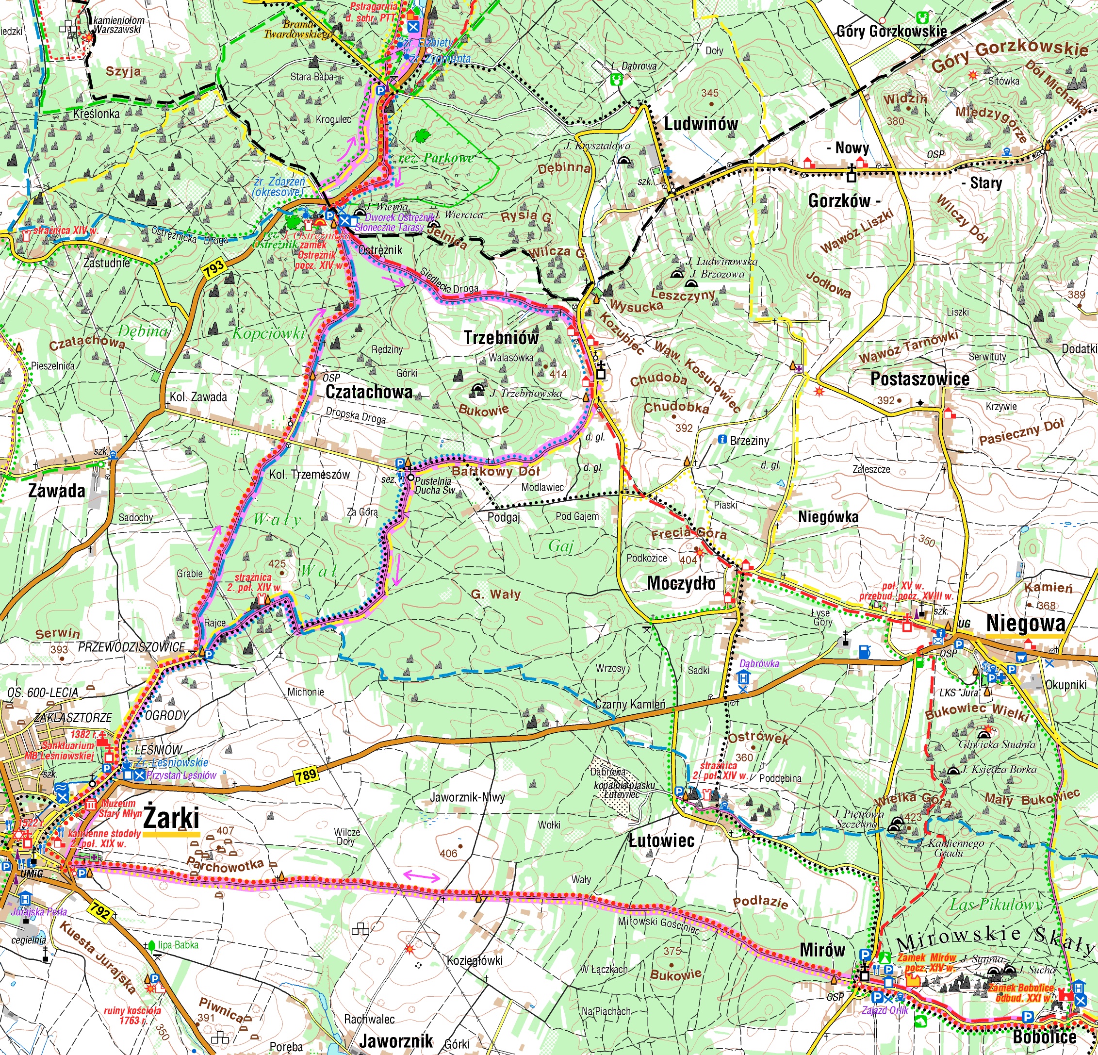 Zabierzemy Was na wycieczkę rowerową naszą ulubioną pętlą. Co będziemy mijać? Zamki w Mirowie, Bobolicach i Ostrężniku, Sanktuarium Matki Bożej Leśniowskiej Patronki Rodzin w Żarkach, Zabytkowy Zespół Stodół wraz z Żareckim Jarmarkiem. Trafimy na strażnicę w Przewodziszowicach, najstarszą pstrągarnię w Europie w Złotym Potoku, urocze stawy, kilka źródełek i skały. Cała wycieczka liczy około 40 km, więc można ją podzielić na fragmenty, jeśli na jeden dzień to za dużo. Wspólnym mianownikiem będzie świetna infrastruktura rowerowa, która powstała tu dzięki funduszom europejskim.