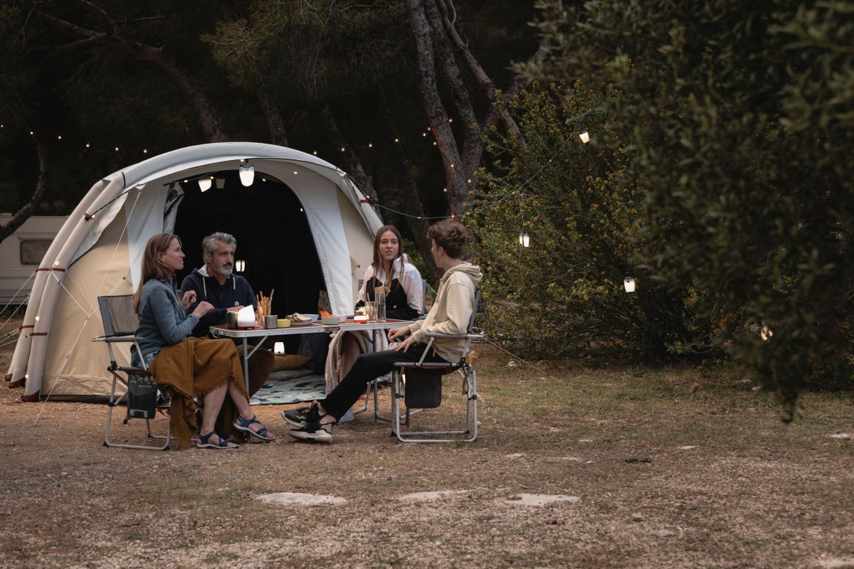 Ciekawe rozwiązania przestrzenne dają namioty tunelowe z przedsionkiem, w którym mogą stać np. rowery. Jednak warto trzymać się zasady, że większy namiot dla rodziny będzie lepszy niż mniejszy. Będziemy w tym miejscu nie tylko spać, ale także przebierać się, grać w gry planszowe, spożywać posiłki, pakować się, czy wymyślać dzieciom zabawy podczas deszczu.