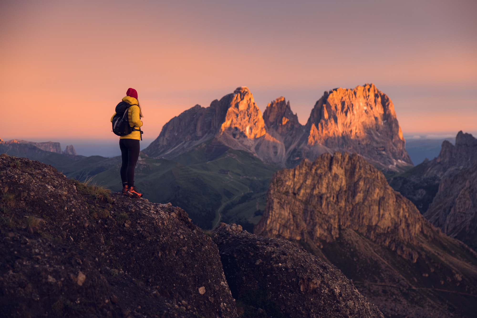 Dla wschodów i zachodów słońca w Dolomitach warto się poświęcić. Trasa Val di Fassa – Viel dal Pan. Zdjęcie Fototeca Trentino Sviluppo, Tom Klocker