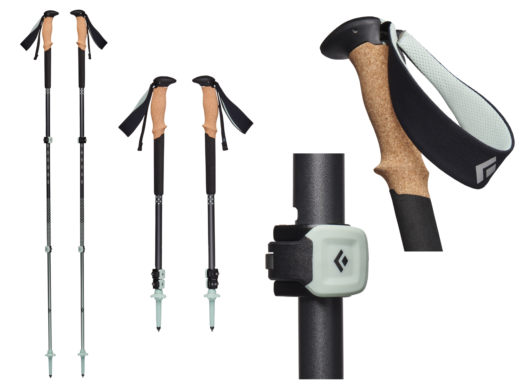 Wykonane z lekkiego i wytrzymałego aluminium serii 7000 Ergonomiczne uchwyty i przedłużenie dla większego komfortu oraz odciążenia rąk Korkowe wykończenie uchwytów zapewnia odpowiednią stabilność kijów, szczególnie jak dłonie są wilgotne Paski nadgarstkowe Solution 2.0 wykonane z włókien pochodzących z recyklingu System blokowania FlickLock+, który pozwala na szybką regulację długości kijów 4-sezonowe końcówki FLEX z talerzykami trekkingowymi (talerzyki śniegowe w zestawie) Wymienna koncówka karbidowa Uniwersalna długość 100-125cm z uchwytem S/M Uniwersalna długość 100-140cm z uchwytem M/L