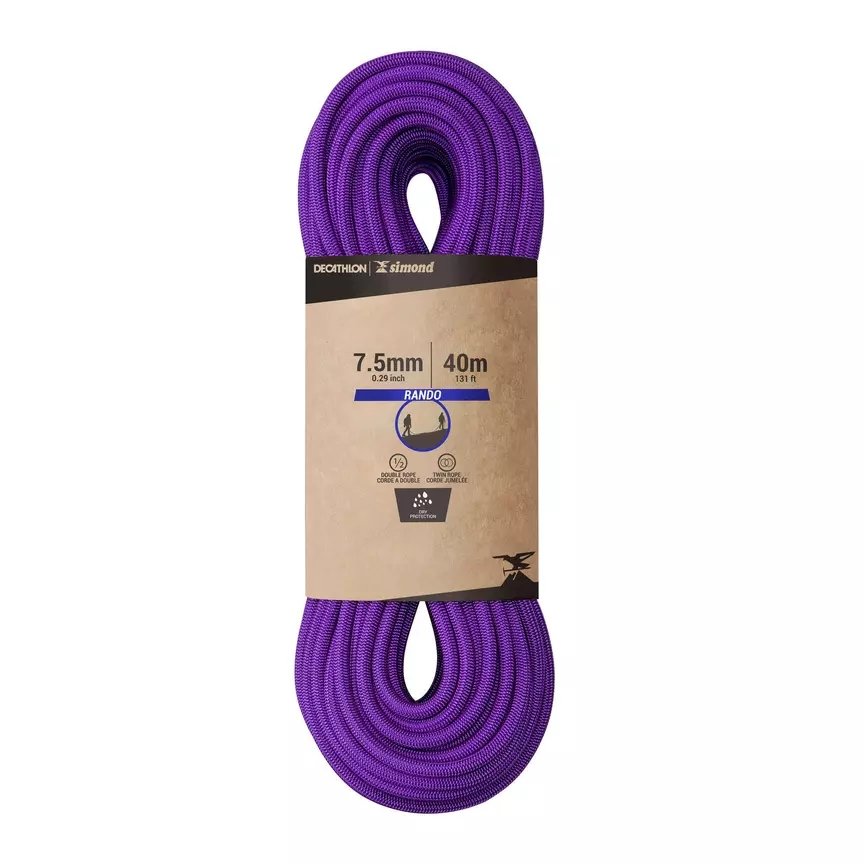 Lina połówkowa Simond Rando Dry 7,5 mm x 40 m Lekka i kompaktowa lina idealna na łatwe wejścia po śniegu, wycieczki na lodowce, skituring lub poręczowanie. Cienka i bardzo lekka. Nie zajmuje dużo miejsca w plecaku. Obróbka DRY: bezpieczeństwo na lodowcach i stromych stokach (zarówno przy wędrówce pieszo, jak i na nartach).