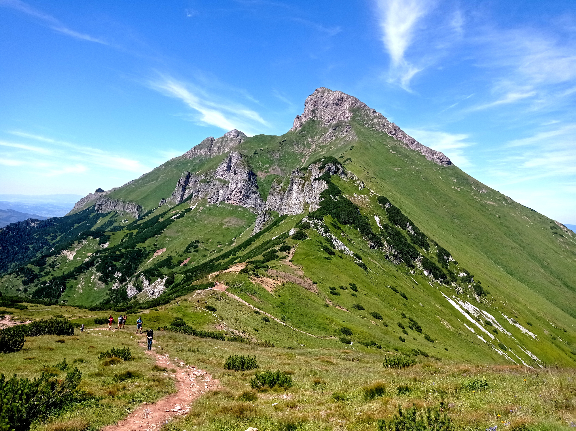 Ale taka gratka to nie dla nas. My idziemy czerwonym szlakiem w kierunku Szerokiej Przełęczy (Široké sedlo). Wpisując w wyszukiwarkę internetową hasło „Tatry Bielskie”, można przeczytać, że to m.in. „kraina samotności, dzikości, a natura najmniej wśród tatrzańskich skażona jest działalnością człowieka”. Faktycznie, takich tłumów jak w Tatrach Wysokich to ze świecą szukać, gdzie ludzie w kolejce na Rysy z nudów robią meksykańską falę. Ale wyśmienita pogoda przyciągnęła na główny szlak Tatr Bielskich całkiem sporą grupę turystów.