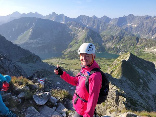 Tatry to dla mnie zastrzyk adrenaliny. Przeszłam wszystkie szlaki i zdobyłam szczyty ich polskiej części. Po latach przerwy i skupienia na rodzinie wróciłam tu. Początki nie były obiecujące. Pierwsze podejście zbiegło się z pamiętną burzą na Giewoncie. Wszyscy wiedzą, jakie panowały wtedy warunki. Druga próba zakończyła się odwrotem. Zdążyłam zaledwie bujnąć się na pierwszym łańcuchu w bardzo silnym wietrze. W tym roku wreszcie do trzech razy sztuka! Pogoda trafiła się doskonała. Było może nawet zbyt upalnie, bo na koniec zabrakło mi wody.