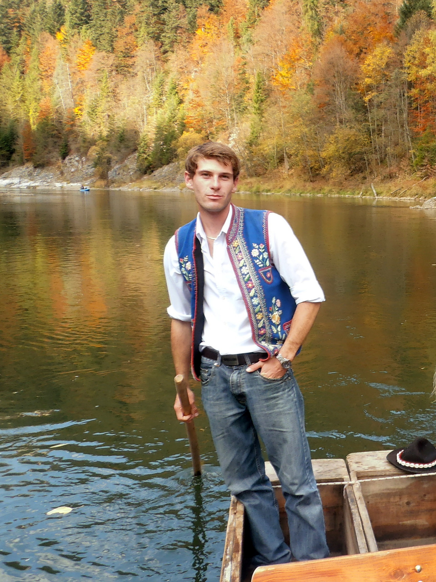 Tak - w białej koszuli, wyszywanej kamizelce i kapeluszu. Natomiast tradycyjne spodnie z parzenicami i kierpce ubieramy tylko na specjalne okazje. Spodnie - bo są drogie, a kierpce - ponieważ są śliskie. Pływamy więc w zwyczajnych spodniach i mocnych butach.