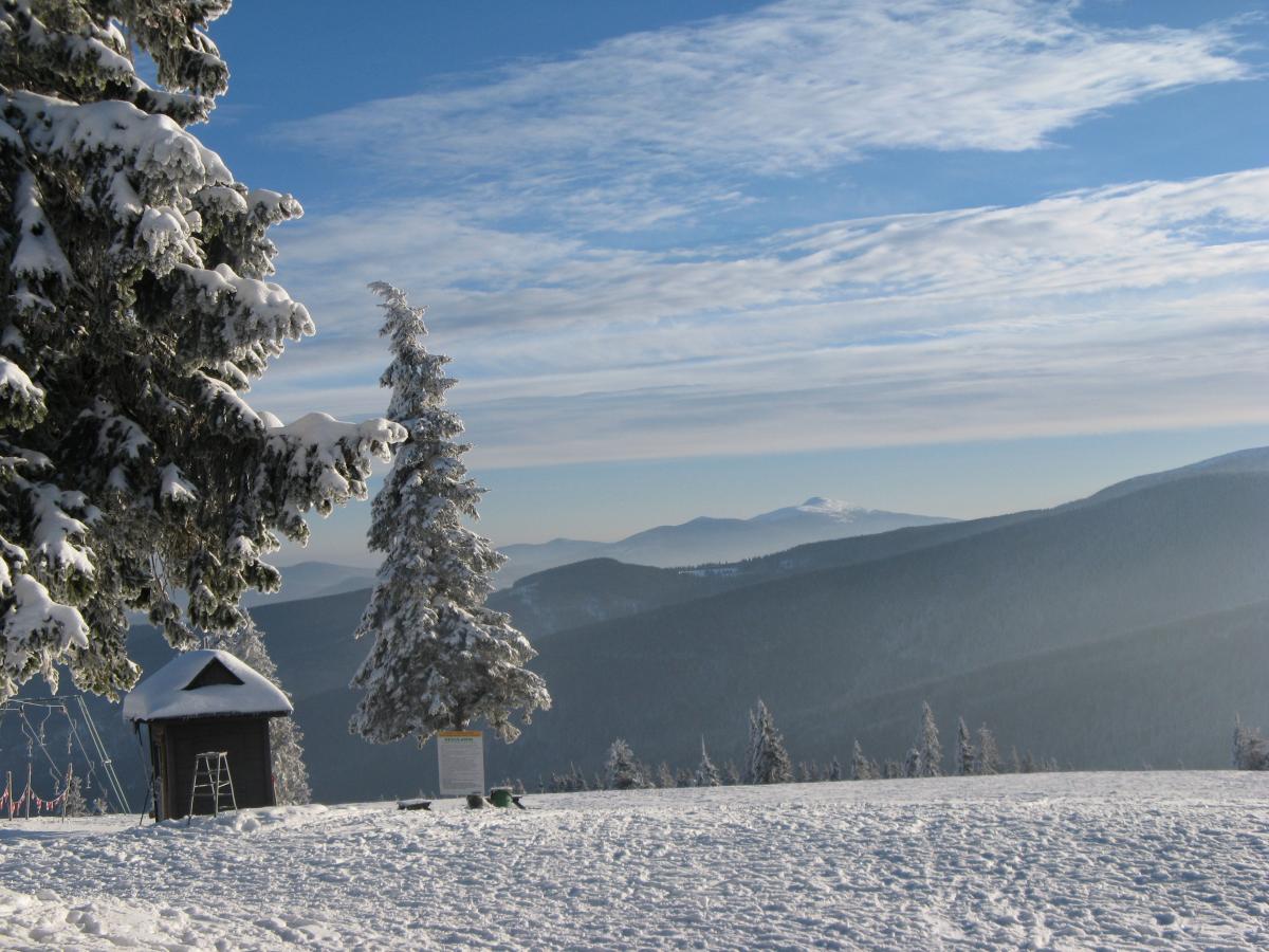 Gdy już nacieszymy się widokami lub zmarzniemy na tyle, by nie czuć palców, ruszamy na zachód, w kierunku Rysianki. Niebieski szlak, który wybieramy, wiedzie wzdłuż granicy państwa. Wzniesienia nie są forsowne, a całość przypomina raczej spacer niż górską wyrypę. Na Trzech Kopcach (1216 m n.p.m.) szlaki się rozgałęziają. Niebieski schodzi w stronę Krawców Wierchu, a czerwony idzie prosto do Schroniska PTTK Rysianka (1254 m n.p.m.).