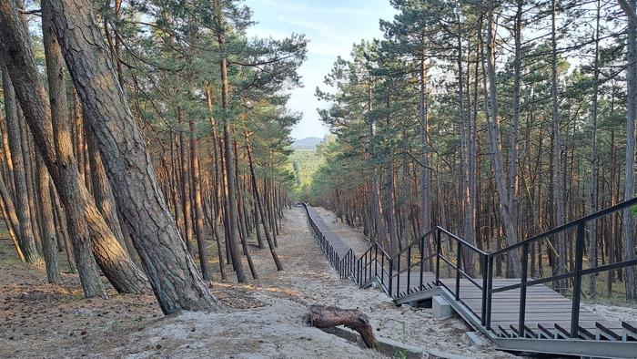 Ruszamy dalej, w kierunku plaży w Czołpinie. Choć zawsze staramy się tak zaplanować trasę, aby oszczędzić sobie dwukrotnego kręcenia tą samą drogą, w tym wypadku warto. Nie jest to zupełnie dzikie dojście do morza, ale należące do tych mniej popularnych. Jednocześnie potrafi skraść serce, szczególnie podczas zachodzącego słońca. Jeśli masz czas, przypnij rower i ruszaj w poszukiwaniu zatopionego lasu. Jest stosunkowo niedaleko.