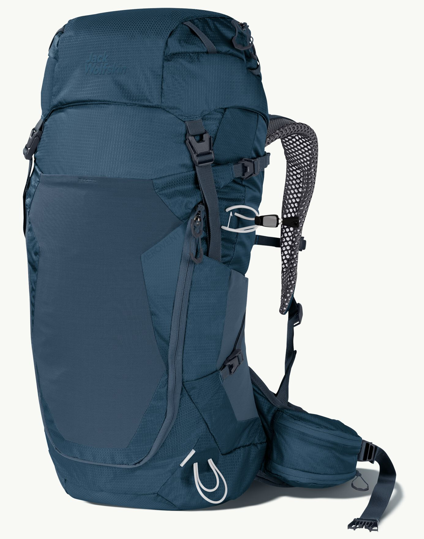 Plecak ma wiele opcji spakowania akcesoriów, np. elastyczne kieszenie siatkowe z przodu i po bokach oraz zaczepy na kijki trekkingowe. Drobiazgi można schować do kieszeni po wewnętrznej stronie klapy. Plecak wyposażony jest także w elementy do zamocowania systemu umożliwiającego picie w drodze.