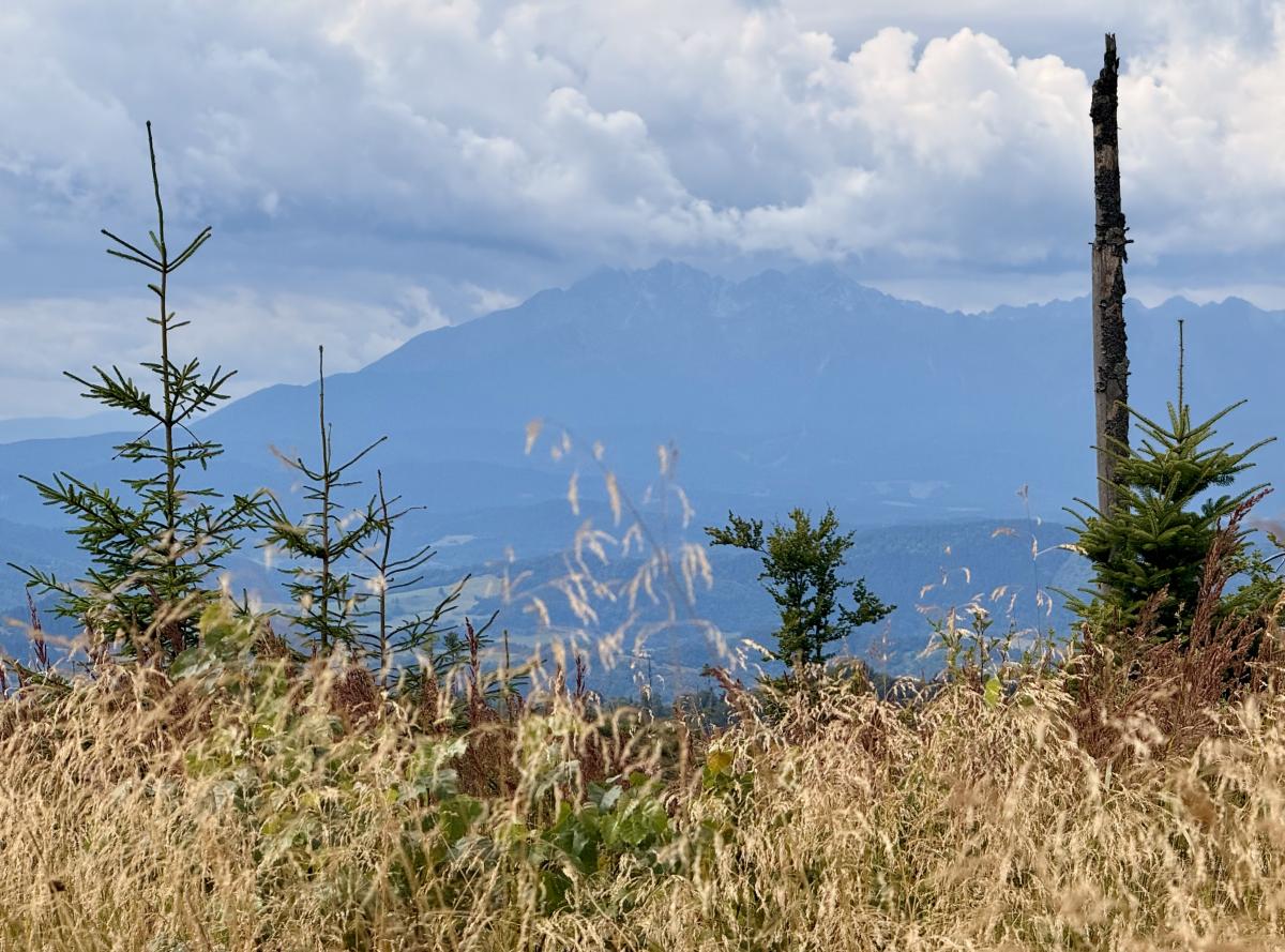 Krótki odpoczynek i ruszamy dalej czerwonym szlakiem. Stąd na Wielki Rogacz już tylko 3 km. Jeśli rzeczywiście chcecie zdobyć ten szczyt, to od szlaku trzeba jeszcze podejść około 300 metrów nieoznakowaną ścieżką. Jest tabliczka z nazwą i wysokością – 1182 m n.p.m. Widoków brak, bo sam wierzchołek jest zarośnięty. Wracamy zatem i prawie idziemy na Radziejową (1262 m n.p.m.), ale tuż przed stromym podejściem rezygnujemy.