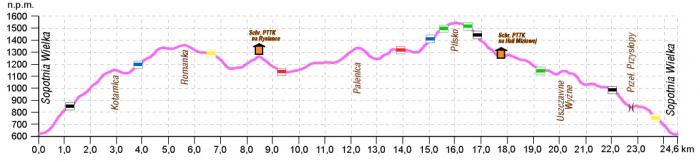 czarny: Sopotnia Wielka – Kotarnica 1 h 40 min ↑ 1 h ↓
