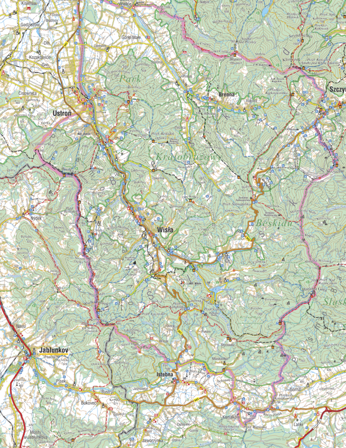 Ustroń – Wielka Czantoria – Soszów Wielki – Kiczory – Przełęcz Szarcula – schronisko Przysłop – Barania Góra – Malinowska Skała – Skrzyczne – Szczyrk – Klimczok – Błatnia – Górki Wielkie - Ustroń