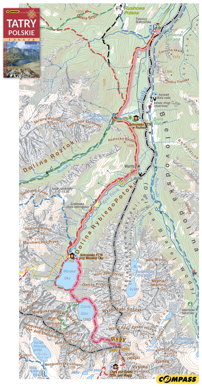 Czerwony: Palenica Białczańska - Schronisko Morskie Oko 2 h 20 min ↑ 1 h 50 min ↓