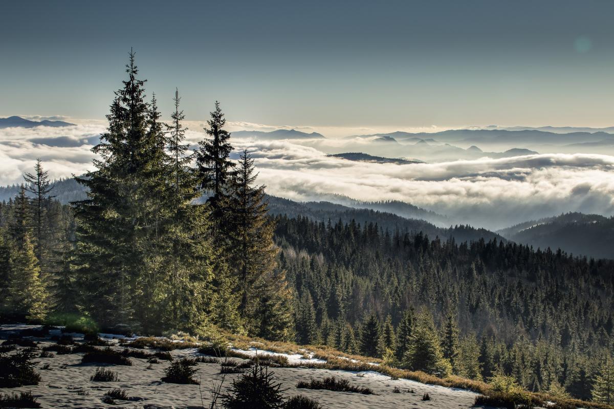 Gorce z Turbaczem (1310 m n.p.m.) na czele to zimowa przygoda w sercu Beskidów. Szlak przez Maciejową, Stare Wierchy i Gorc zachwyca panoramami na Tatry.