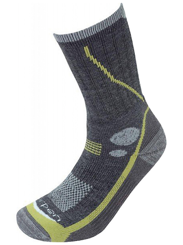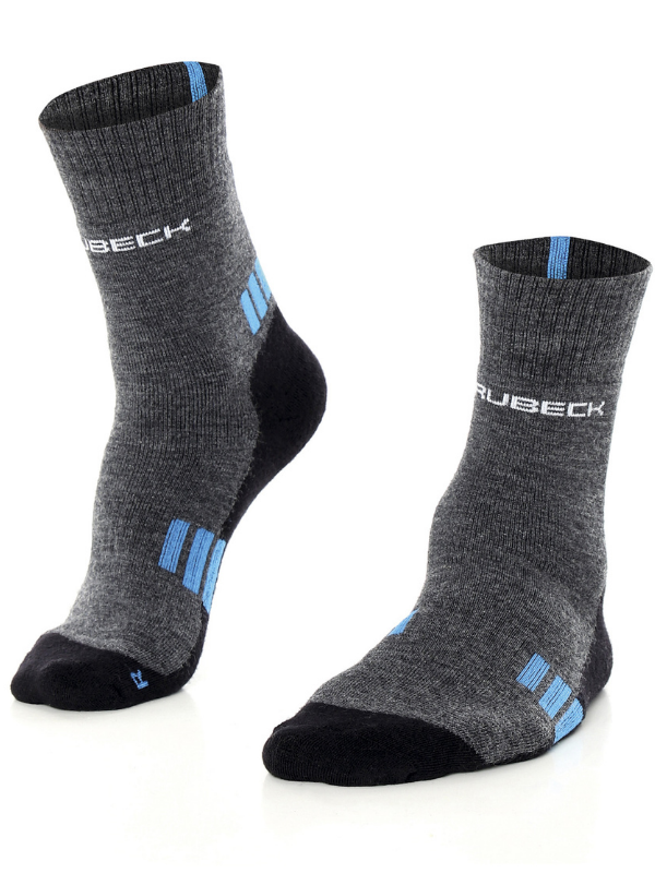 Wełna merino - nieprzypadkowo pierwsza w zestawieniu. Często to właśnie skarpety są tym elementem wyposażenia, dzięki któremu wielu użytkowników poznaje fantastyczne własności wełny z owiec merynosów. W odróżnieniu od klasycznej wełny jest trwalsza i nie wywołuje nieprzyjemnego uczucia “gryzienia”. Naturalne właściwości antybakteryjne są nieocenione, gdy jedną parę nosimy przez wiele dni, czy to z wyboru, czy z konieczności. Sprawne odprowadzanie potu, wysokie zdolności do izolacji termicznej (również po przemoczeniu) i komfort przy długotrwałym kontakcie z gołą skórą - to dzięki tym cechom wełna merino zyskała tak powszechne uznanie jako materiał do produkcji bielizny turystycznej.