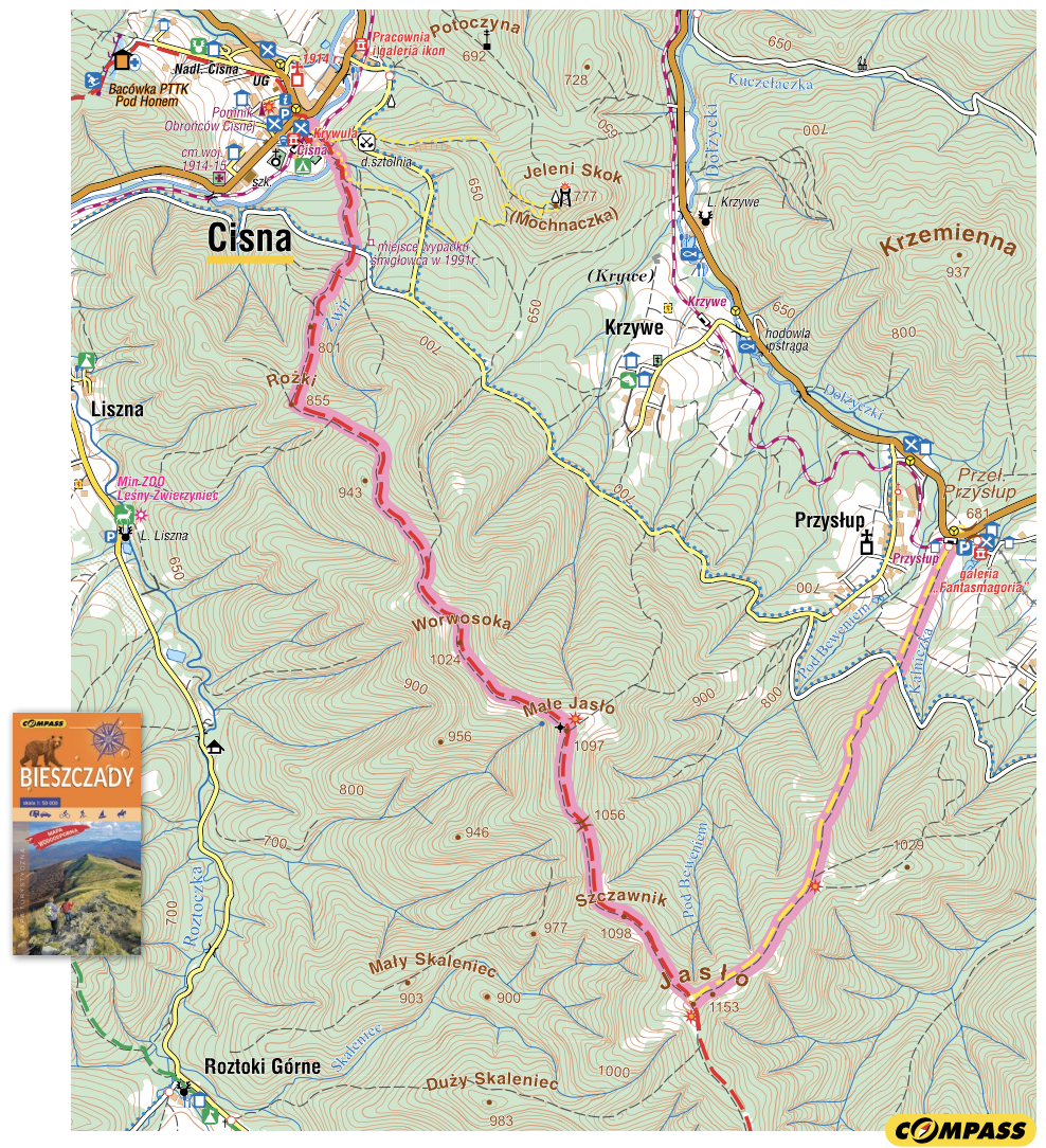 czerwony: Cisna – Rożki – Jasło 3 h 15 min ↑ 2 h 15 min ↓