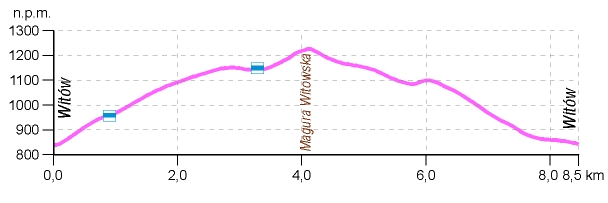 Mijamy niewielką kapliczkę i ponownie zagłębiamy się w las wyraźną ścieżką, by pół godziny później wejść na Witowski Przysłop (1164 m n.p.m.). Po halnym w 2013 roku jest to szczyt z pięknym widokiem. Idziemy dalej szlakiem, który prowadzi przecinką leśną, kawałek zjeżdżamy na fokach i po ostatnim bardziej stromym podejściu wchodzimy na szczyt Magury Witowskiej (1232 m n.p.m.). Piękny mamy tu widok na Tatry, a także góry Małej Fatry, Babią Górę i Pilsko. Na szczycie jest wiata i dwie tablice z mapą okolic Orawic.