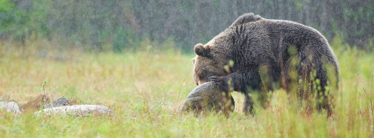Podobnie może być, gdy pojawimy się w jego pobliżu w czasie żerowania, zwłaszcza przy zabitej ofierze. Zwierzę może wtedy bronić swojej zdobyczy. Nie zapominamy, że niedźwiedź nie szuka kontaktu z człowiekiem, a jego reakcje są spowodowane poczuciem zagrożenia lub koniecznością obrony.