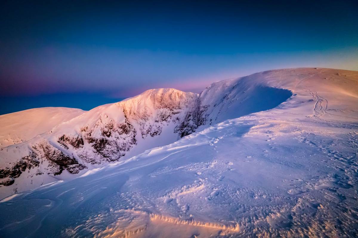Aby zdobyć Ciemniak, trzeba pokonać ponad 6 km i niebagatelną sumę przewyższeń przekraczającą 1200 metrów. Może dlatego wiosną na szlaku spotykam jedynie kilku skiturowców, stado ciekawskich kozic, a na samym szczycie lisa, z którym wymieniamy uważne spojrzenia. Po chwili rusza on w dalszą drogę zaśnieżoną granią, a ja pakuję sprzęt fotograficzny i zaczynam schodzić.