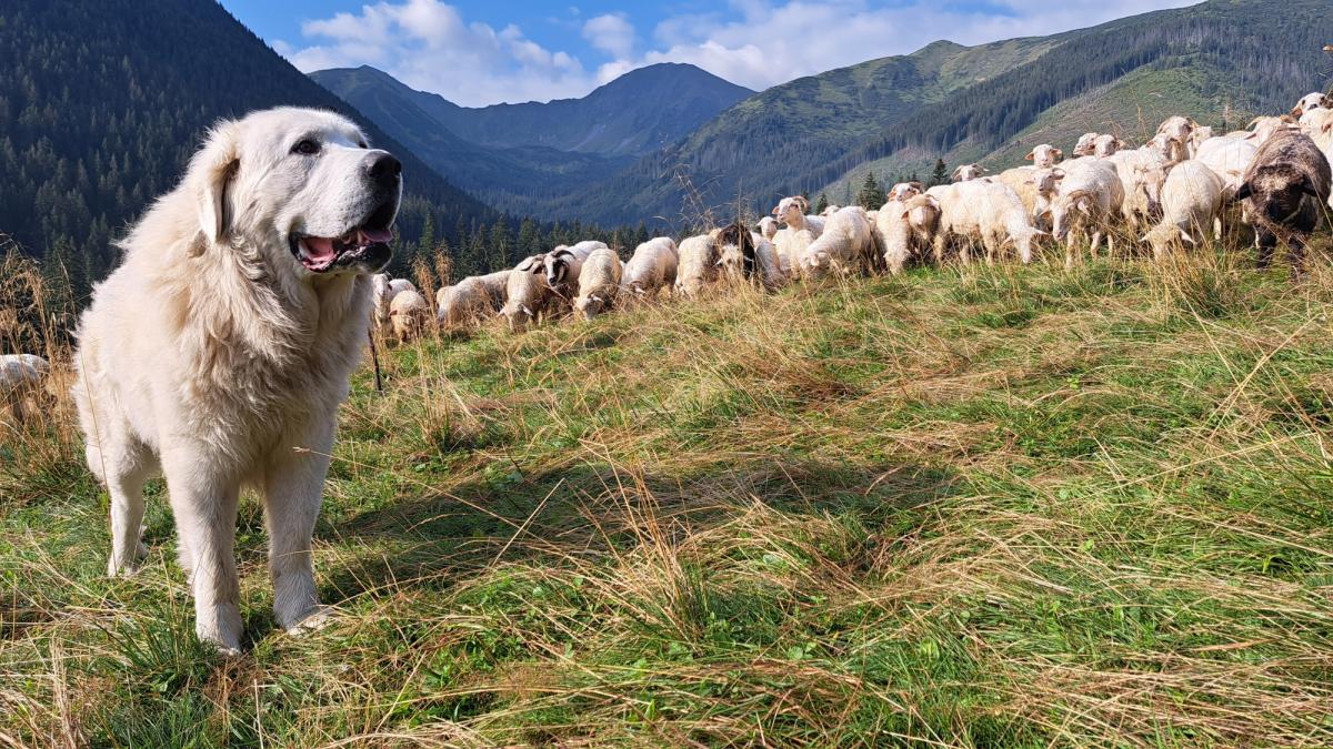 Do opieki nad stadem potrzebne są dwa rodzaje psów: obronne i pasterskie. Jako pasterskie, czyli te "pracujące", które potrafią pobiec po owcę, przyprowadzić ją, czy pokierować stadem, najlepiej sprawdzają się border colie oraz ich mieszańce. Ale praktycznie prawie każdy wiejski kundel potrafi się tego nauczyć, jeżeli w stadzie jest kilka doświadczonych psów. Natomiast do obrony najlepsze są owczarki podhalańskie, które - odpowiednio prowadzone - od szczeniaka stale przebywają z owcami i stado traktują jak własne. To one w razie potrzeby oddadzą za owce życie, nie uciekną. Szczególnie cięte są suki, bo uznają owce za swe młode. Nie pozwolą podejść do stada, nie pozwolą ich dotknąć. Turyści powinni na to uważać i zrozumieć, że musimy mieć ostre psy. Są naszą jedyną obroną przed wilkami.
