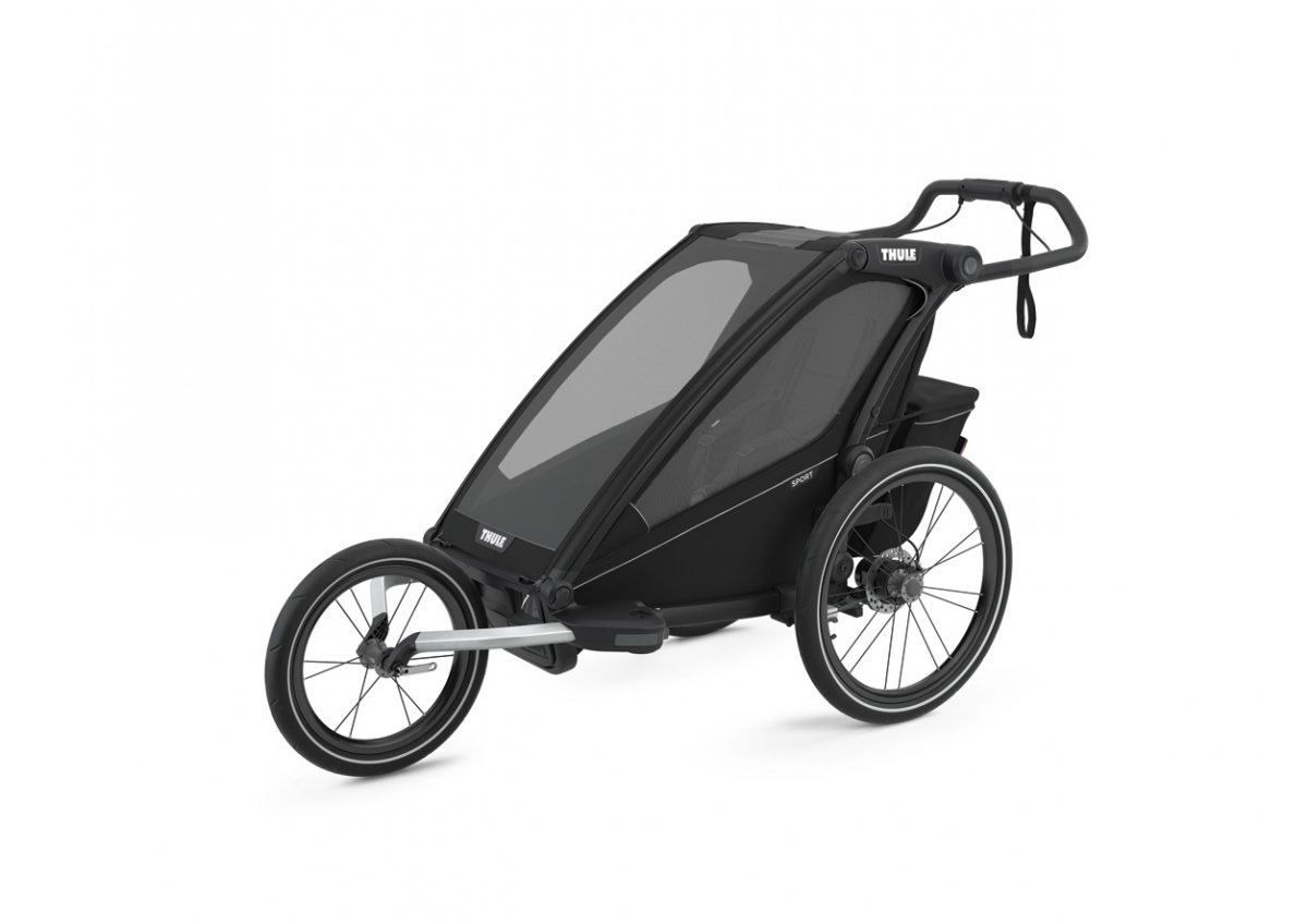 Thule Chariot Sport wyposażono m.in. w zaawansowane, regulowane zawieszenie. Dzięki temu przyczepka nie tylko świetnie amortyzuje wszelkie nierówności, ale dodatkowo możemy ustawić poziom amortyzacji – tak, by był dopasowany do wagi pasażera i specyfiki trasy. Bezpieczeństwo malucha gwarantuje solidna aluminiowa konstrukcja, pięciopunktowe pasy bezpieczeństwa oraz skuteczne hamulce tarczowe. O jego komfort dba z kolei w pełni wyściełane siedzenie oraz kabina Climate Control Cockpit z wyjmowanymi oknami i regulowaną osłoną przeciwsłoneczną zapewniająca przyjemną i płynną jazdę. Dzięki niej oraz osłonie deszczowej, maluchowi nie będzie straszna najgorsza ulewa, podczas której pchający rodzic będzie żałował, że nie zmieści się do środka.