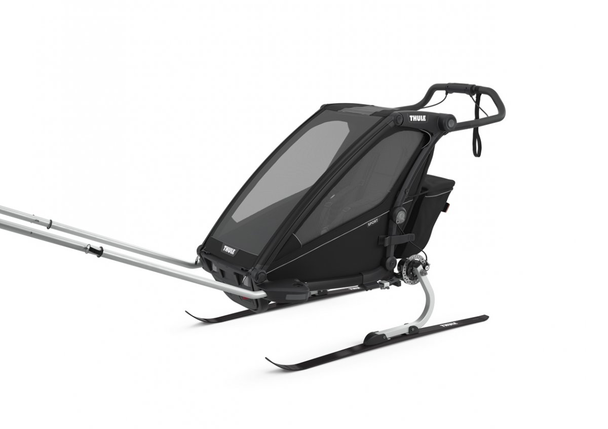 Ogromną zaletą Thule Chariot Sport jest również możliwość doposażenia jej w dodatkowe akcesoria. Chodzi np. o uchwyty na kubki, śpiwór czy hamaczek dzięki któremu na wędrówki po równym terenie zabierać możemy nawet niemowlęta. Jest też Thule Chariot Cross-Country Skiing Kit, pozwalający zmienić przyczepkę w komfortowe sanie, które możemy ciągnąć za sobą na biegówkach. Taki zestaw składa się z nart oraz uprzęży dla rodzica.