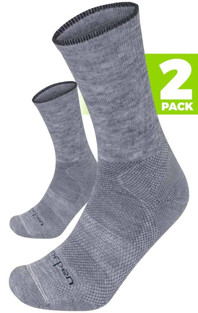 2 pary skarpet z kolekcji Merino są idealne dla tych, którzy potrzebują wielu par skarpet na trudnych trasach. Zaprojektowane na jesień, zimę i wczesną wiosnę. Połączenie wełny Merino i akrylu zapewnia całodzienne ciepło, odprowadzając wilgoć z dala od stopy, aby zapewnić suchość. Dzianina z lekką amortyzacją w całej skarpetce zapewnia ciepło i dopasowanie do butów, zapobiegając podrażnieniom.