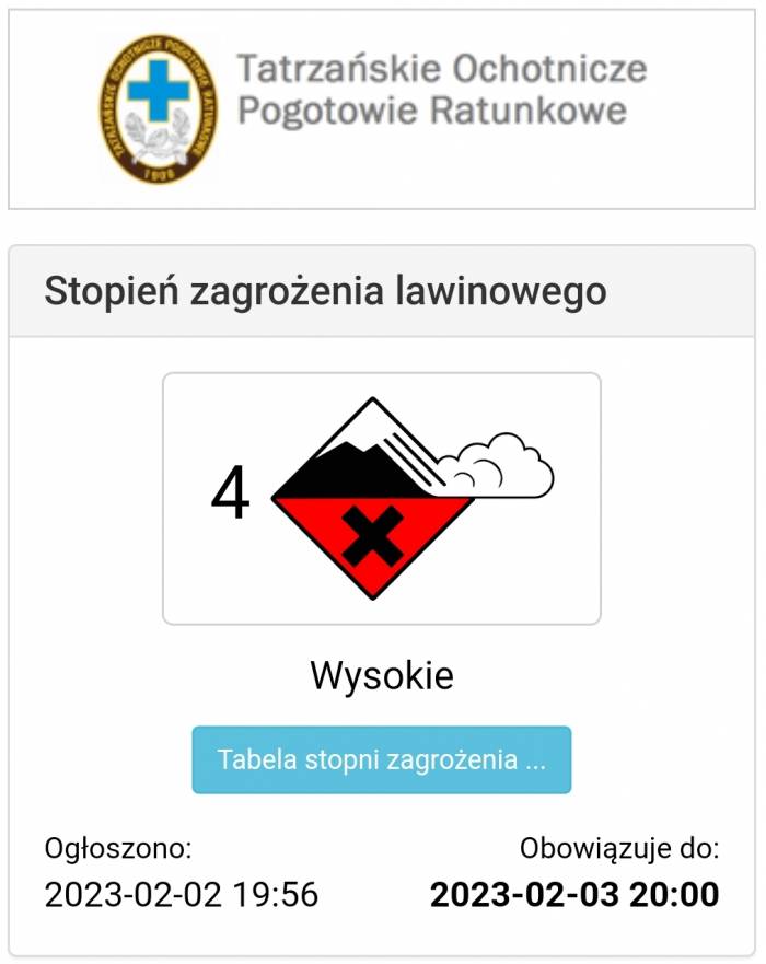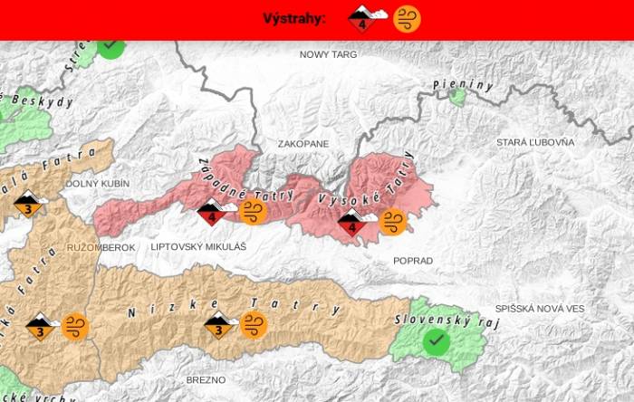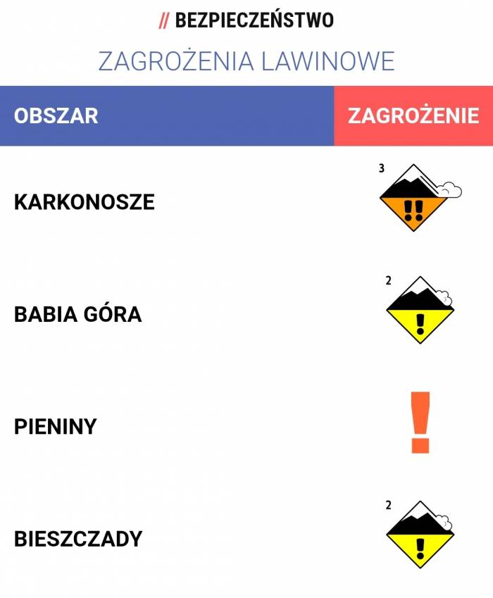 3 stopień zagrożenia obowiązuje w czeskich Karkonoszach, a w Tatrach słowackich podobnie jak po naszej stronie - 4.