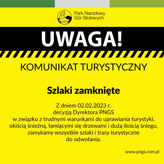Dyrekcja Parku Narodowego Gór Stołowych podjęła decyzję o zamknięciu szlaków do odwołania