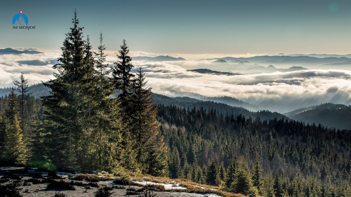 Idziemy dalej. W pewnym momencie ścieżka odbija między drzewa, kluczy i wreszcie wpełza na Turbacz pod betonowy obelisk. Zimowe wejście czcimy łykiem mocnego specyfiku, o nazwie Pachniak. Świadkiem toastu są Tatry i Babia. Stoimy pośrodku gorczańskiej rozgwiazdy, skąd rozchodzi się siedem wspaniałych ramion. Jutro jednym z nich, udamy się w interior Gorczańskiego Parku Narodowego.