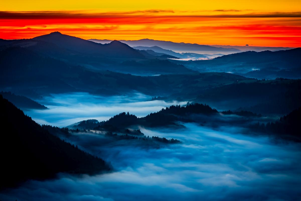 Rzut oka na Małe Pieniny i Słowację na chwilę przed wschodem słońca. Zdjęcie Bartek Muracki