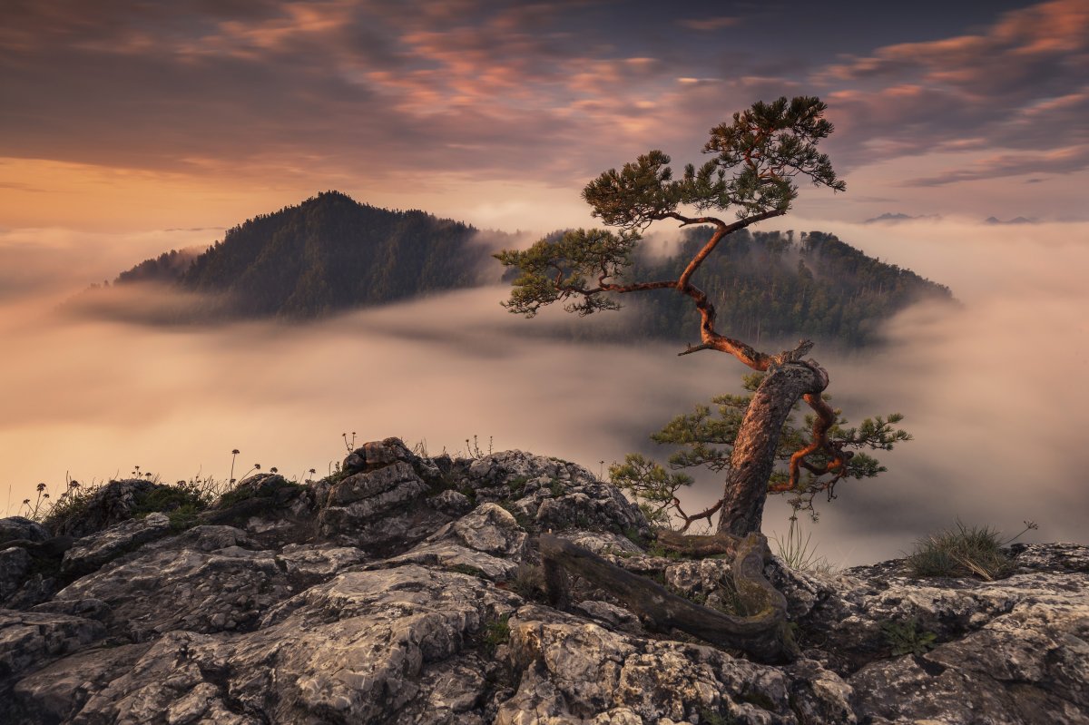 Już dwa lata minęły, gdy najbardziej charakterystyczny punkt Sokolicy stracił dwa konary. Ale i tak widoki z tej góry są jedyne i niepowtarzalne. Fotografowie najbardziej kochają mgły.