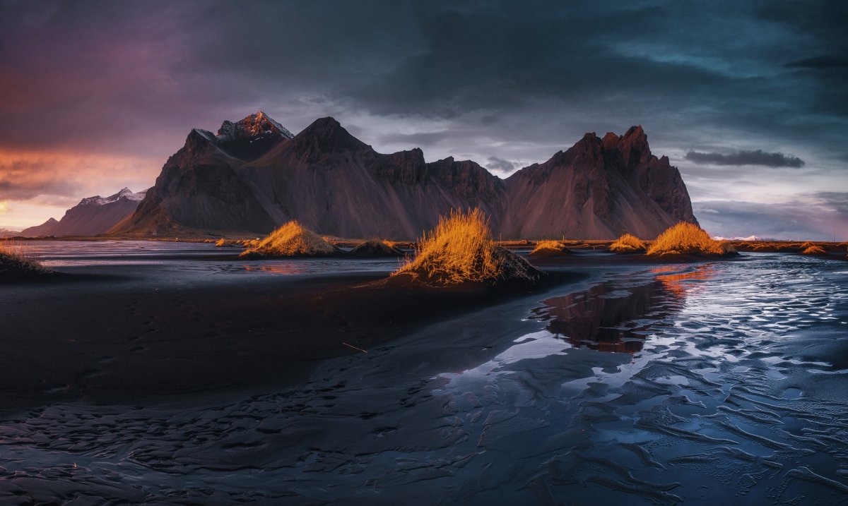 Rejonem, który szczególnie lubię jest półwysep Stokksnes, leżący na południowym wschodzie wyspy. Znajduje się tutaj urocza czarna plaża (chyba najładniejsza ze wszystkich czarnych plaż w kraju), pełna porośniętych trawami wydm, nad którą góruje efektowny masyw Vestrahorn. To jedno z ulubionych miejsc fotografów, bo okolica zachwyca o każdej porze dnia i nocy. Mnogość form na piasku, wściekłe morskie fale oraz strzeliste góry zespalają się tutaj w wyjątkowo harmonijną scenerię, która przyciąga miłośników krajobrazu z całego świata.