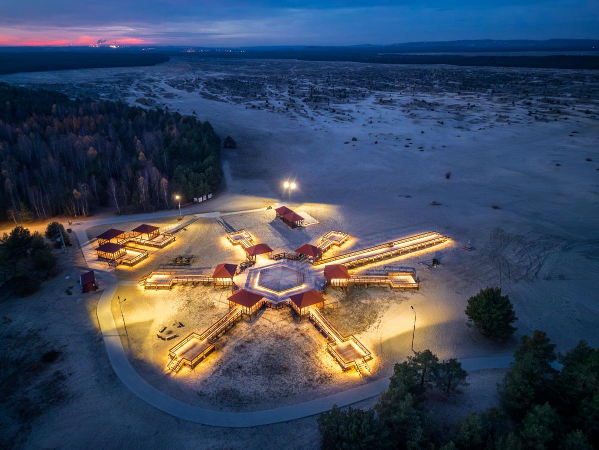 Pustynia zwykle kojarzy się z wielbłądami, beduinami i niekończącymi się wydmami. Tymczasem nasza polska Sahara wygląda zupełnie inaczej. Zamiast karawany mamy peleton rodzin na rowerach, zamiast fatamorgany stałe punkty widokowe, a w miejsce oazy nowoczesne wiaty, kładki i ścieżki pieszo-rowerowe.
