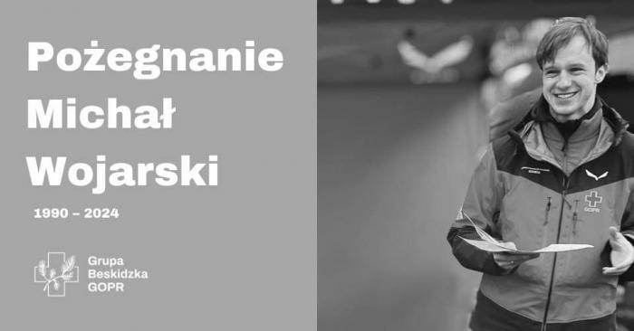 "Z niedowierzaniem i wielkim smutkiem przyjęliśmy wiadomość o tragicznej śmierci naszego Kolegi, ratownika Grupy Beskidzkiej GOPR Michała Wojarskiego, który w sobotę 20 kwietnia zginął w lawinie w Tatrach Wysokich.