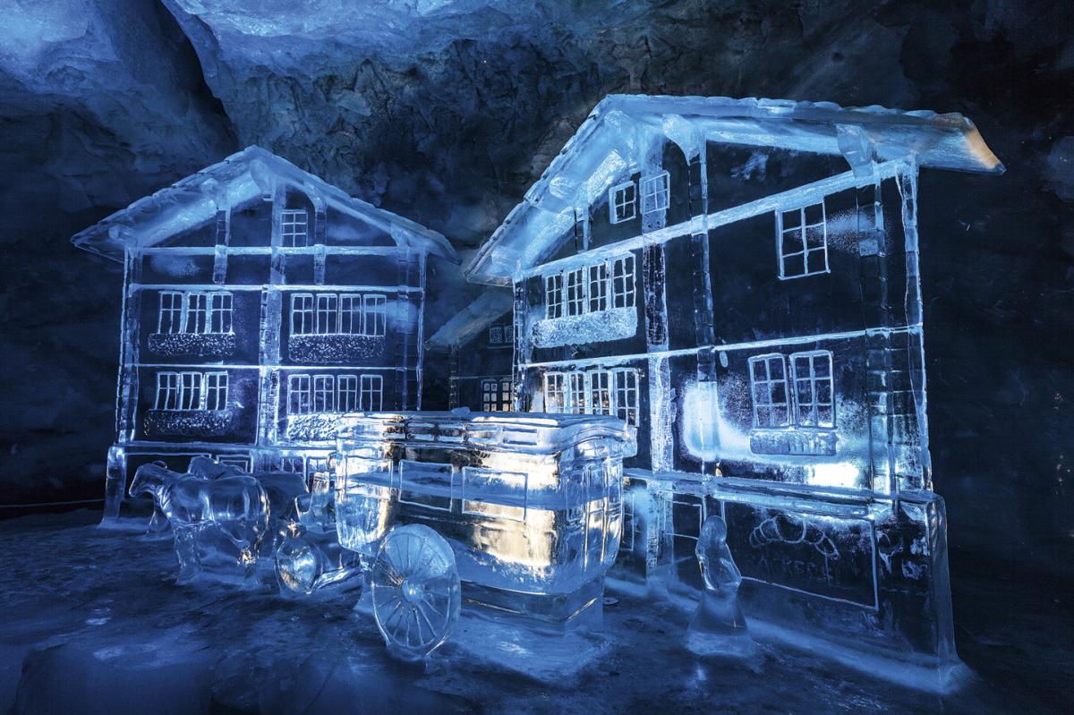 Atrakcją, której nie można pominąć na szczycie, jest wizyta we wnętrzu lodowca. Do lodowego pałacu prowadzi winda przy wyjściu ze stacji na włoską stronę. Jego wnętrze jest niesamowite. Poza ścianami z lodu podziwiać możemy przeróżne figury wykute w zamarzniętej wodzie. Dla tych, co lubią bić rekordy, polecam chociaż wypicie kawy w bufecie. Może się bowiem okazać, że dla wielu osób będzie to najwyżej wypita kawa w życiu.