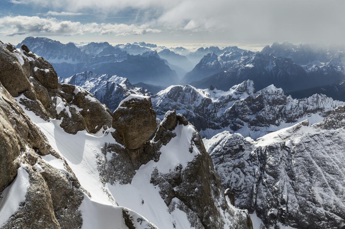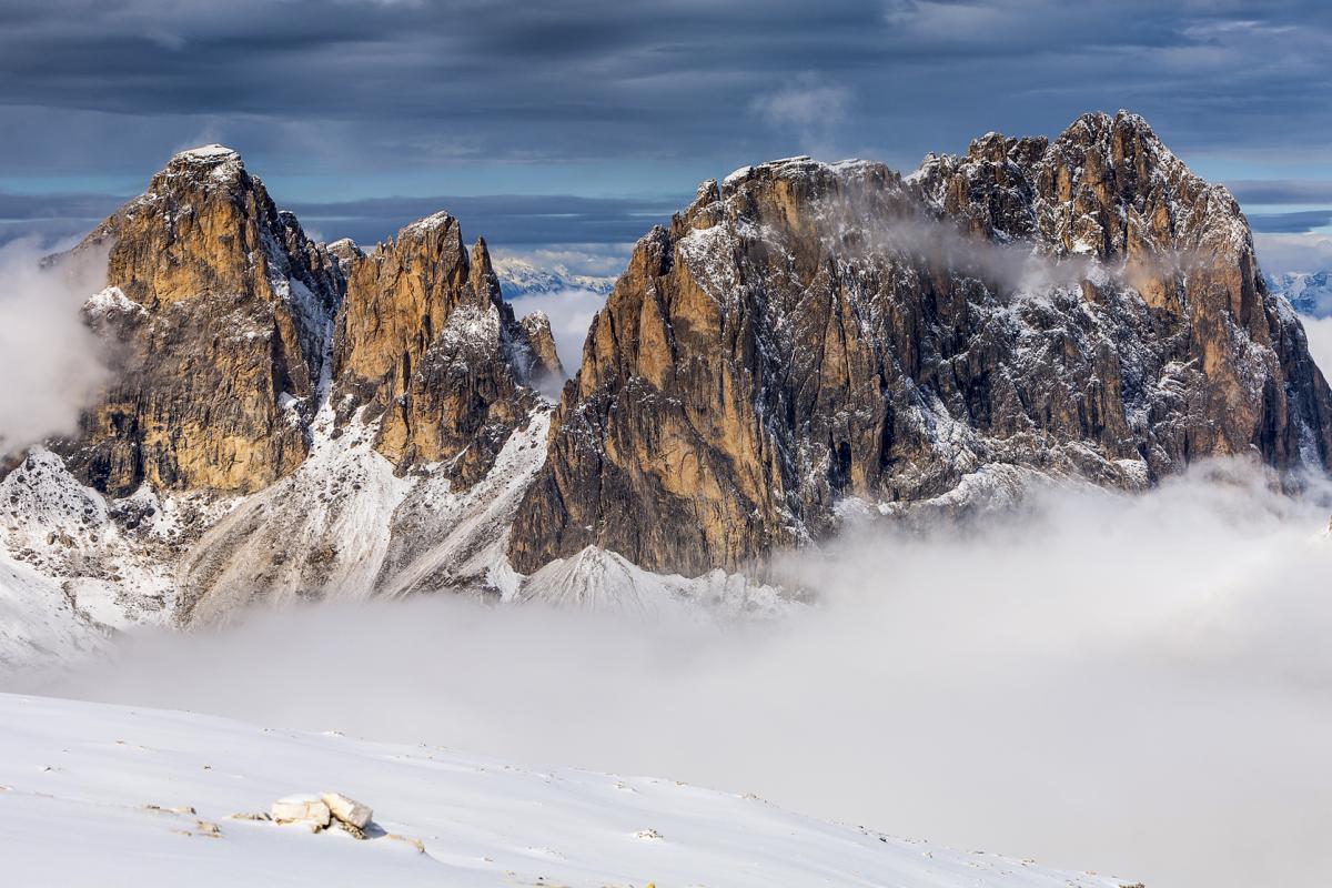 (3152 m n.p.m.). Zimą z Sass Pordoi roztacza się jedna z najpiękniejszych panoram na północną ścianę Marmolady i majestatyczne trzy zęby, czyli Sassolungo. To idealne miejsce do tego, by popijając pyszną włoską kawę, podziwiać Dolomity.