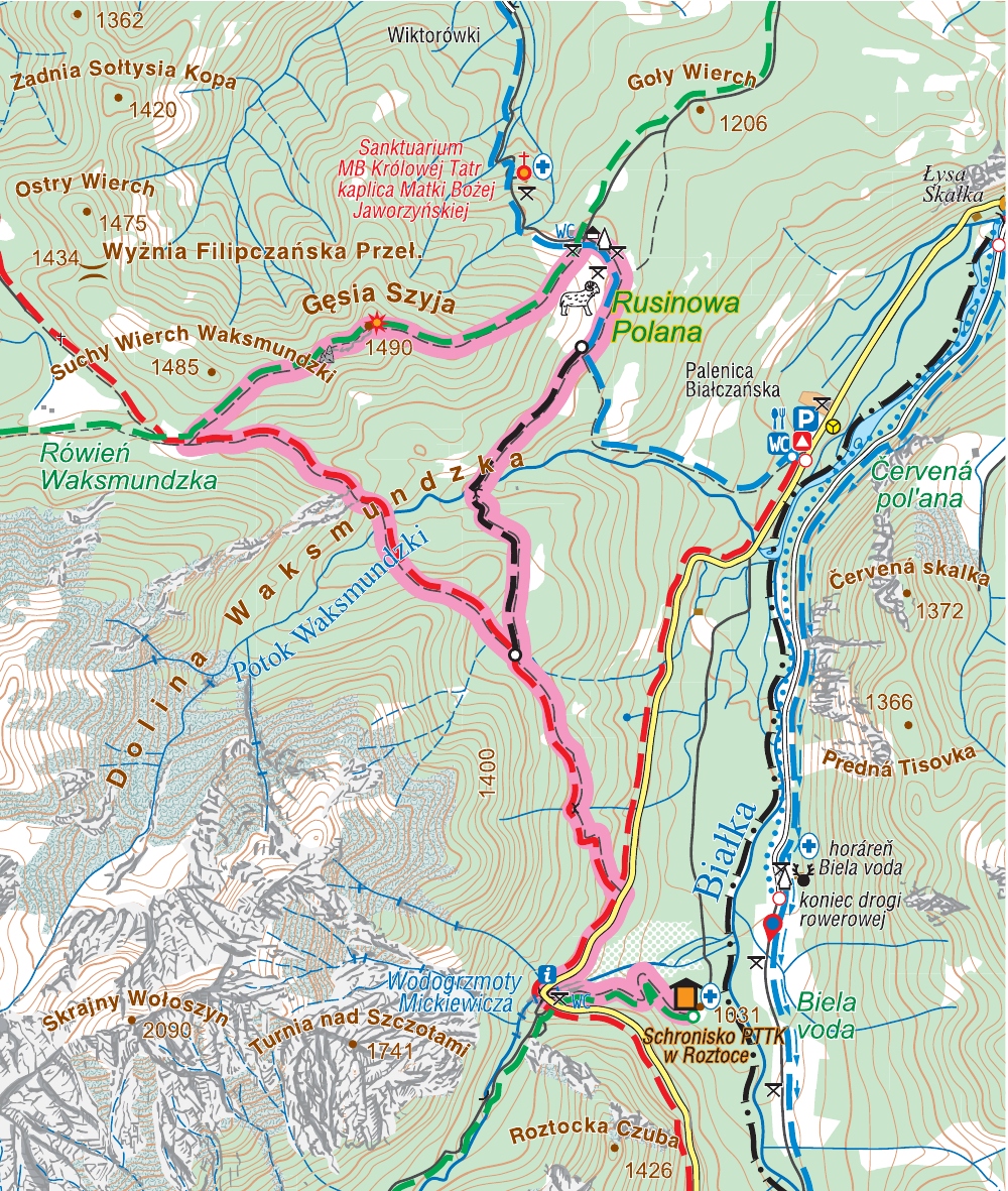 zielony: Rówień Waksmundzka – Gęsia Szyja – Rusinowa Polana 40 min ↓ 1 h ↑