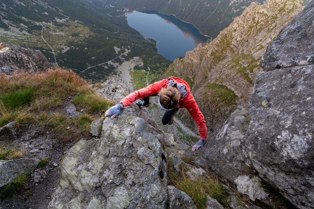 Dokładnie. Na pewno moją główną motywacją była silna potrzeba wejścia w stan, gdzie nie ma nic. Jest on mi znany nie od dzisiaj i bardzo go lubię. Do tego poczucie wolności i przekraczanie własnych granic. Chciałam przetestować swoje możliwości i sprawdzić, co się zadzieje z moją głową. Czy będę panikować, czy będę spokojna? Jak się zachowa moje ciało? Byłam bardzo ciekawa, co tam się wydarzy. Od kiedy pamiętam, taki stan wyobcowania, odłączenia wszystkiego, a nawet odizolowania od samej siebie, był obecny w trakcie moich wspinaczek. Na zawodach, na Pochylcu [skała na Jurze Krakowsko-Częstochowskiej], na każdej ściance, na której trenowałam, miałam tę tak zwaną „odklejkę”. I to mi towarzyszy od ponad 20 lat. W trakcie żywcowania w Tatrach ten stan przyszedł do mnie z takim impetem, jakbym była szklanką, do której się nalewa i staje się totalnie pełna. I to było coś absolutnie niesamowitego. Chciałam przeżyć to po całości i poczuć taką lekkość. To jest coś, co tak jak mówisz, jest nie do opisania. To po prostu trzeba przeżyć.