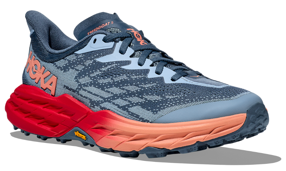 Speedgoat 5 to zawodnik, którego spotkamy na biegach trailowych na całym świecie. Model jest szczególnie lubiany przez górskich biegaczy ultra z uwagi na świetną izolację od podłoża. Zyskał miano jednego z najlepiej amortyzowanych butów na górskie biegi ultra. But zaprojektowany został z myślą o długich i trudnych trasach – niezwykle miękka amortyzacja to wielki atut na skalistych, stromych zbiegach. Bieżnik o 5 mm wysokości ulepszony dzięki technologii Vibram Megagrip z większymi wgłębieniami trakcyjnymi jest gwarancją najlepszej przyczepności.