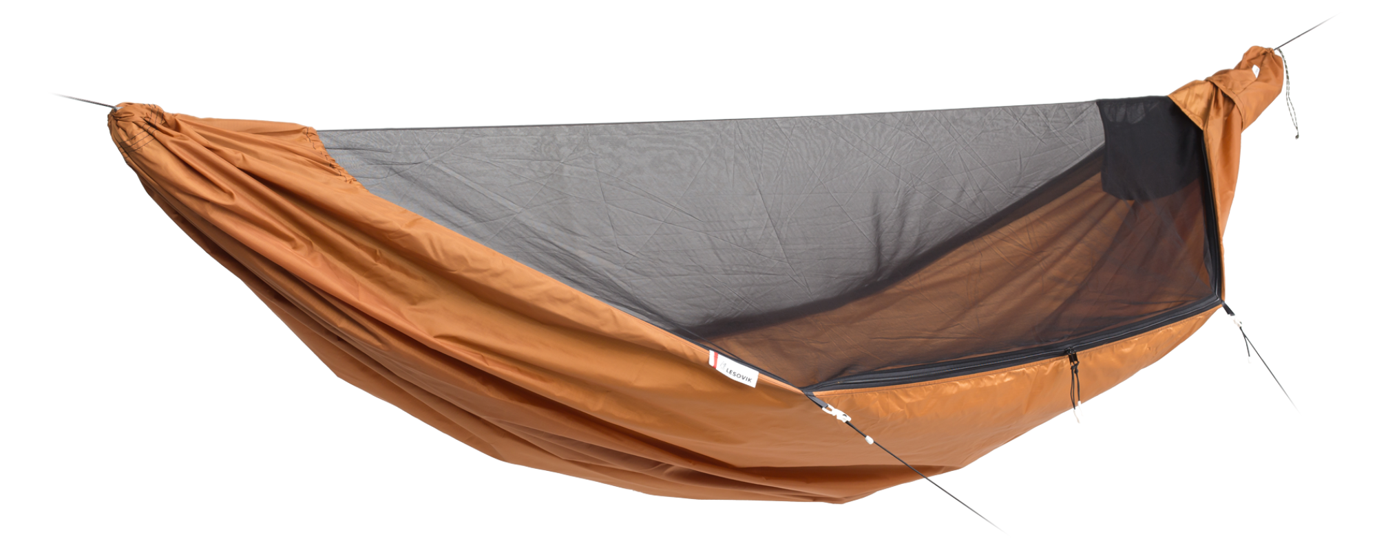 moskitiera: w sezonie letnim akcesorium na wagę złota. Nie polecam modeli wymagających dodatkowego mocowania, rozpórek ani innych zbędnych komplikacji. Najpopularniejsze z dobrych rozwiązań to moskitiera wyposażona w zamki błyskawiczne wzdłuż burt hamaka lub tzw. “fronkey” - otwarta od dołu, lecz wykończona tunelem z gumką, szczelnie opinająca hamak od spodu. Istotne, by była łatwa w demontażu.