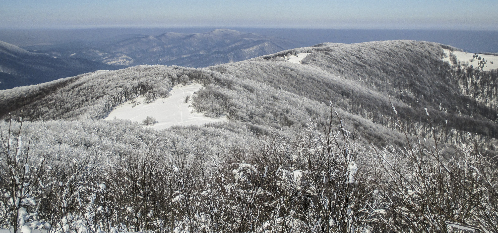 Widok z Jasła na Małe Jasło i masywy leśne Bieszczadów Zachodnich. Zdjęcie Wojtek Szatkowski
