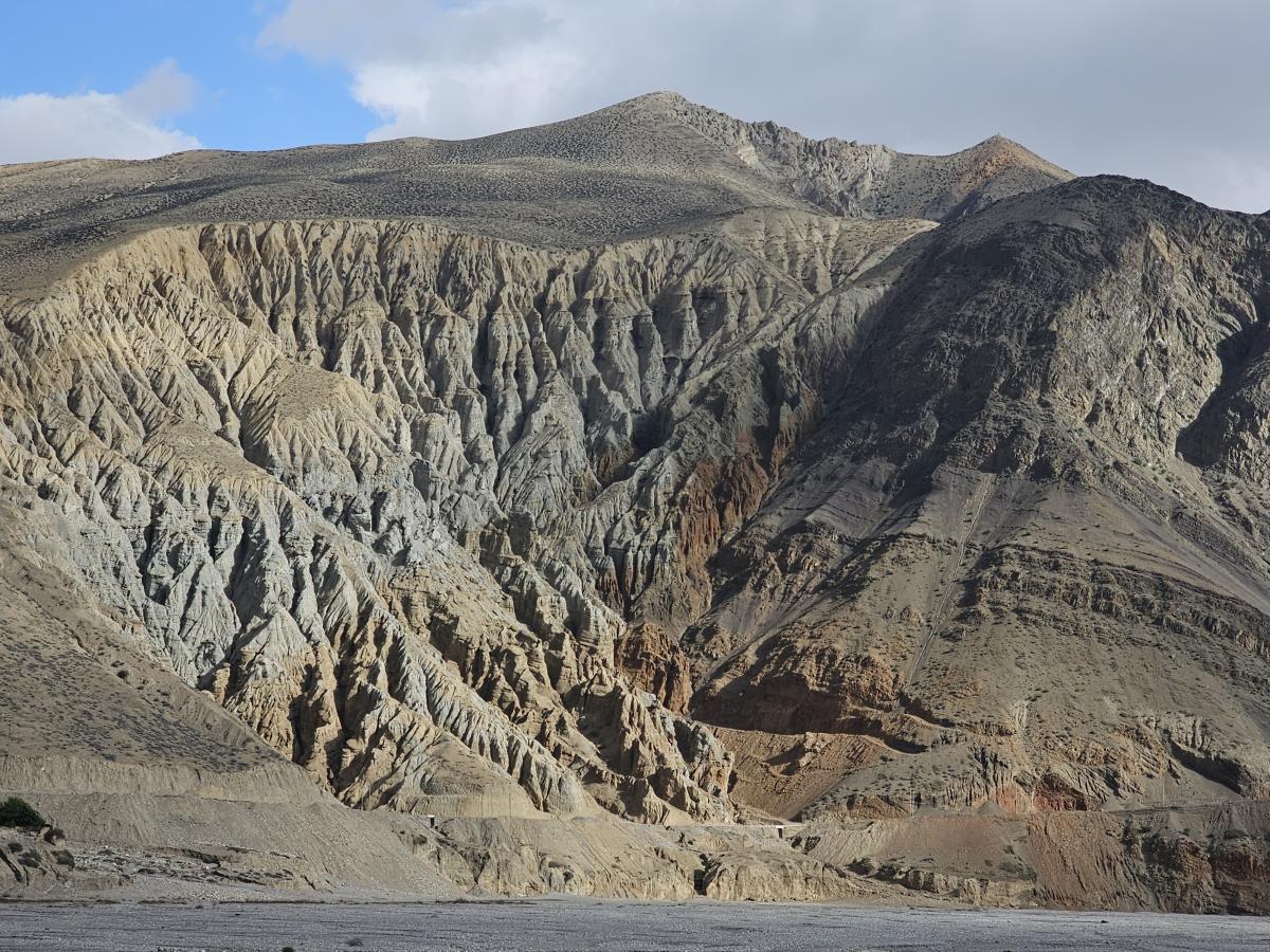Natomiast bliższe, otaczające nas plany wypełniają góry niższe, kojarzące się raczej z pustynią - wysuszone, bezdrzewne, za sprawą natury (erozji, wody i wiatru) w zaskakujący sposób rzeźbione. Zielone enklawy też się jednak zdarzają - głównie przy wioskach. Tam, gdzie dało się zapewnić nawodnienie. Zaś dumą Mustangu są sady jabłoniowe. Można je spotkać nawet na wysokości 3600 m n.p.m.! Z tego powodu w sklepikach w Jomsom do podstawowych towarów należą suszone jabłka i jabłkowe brandy.