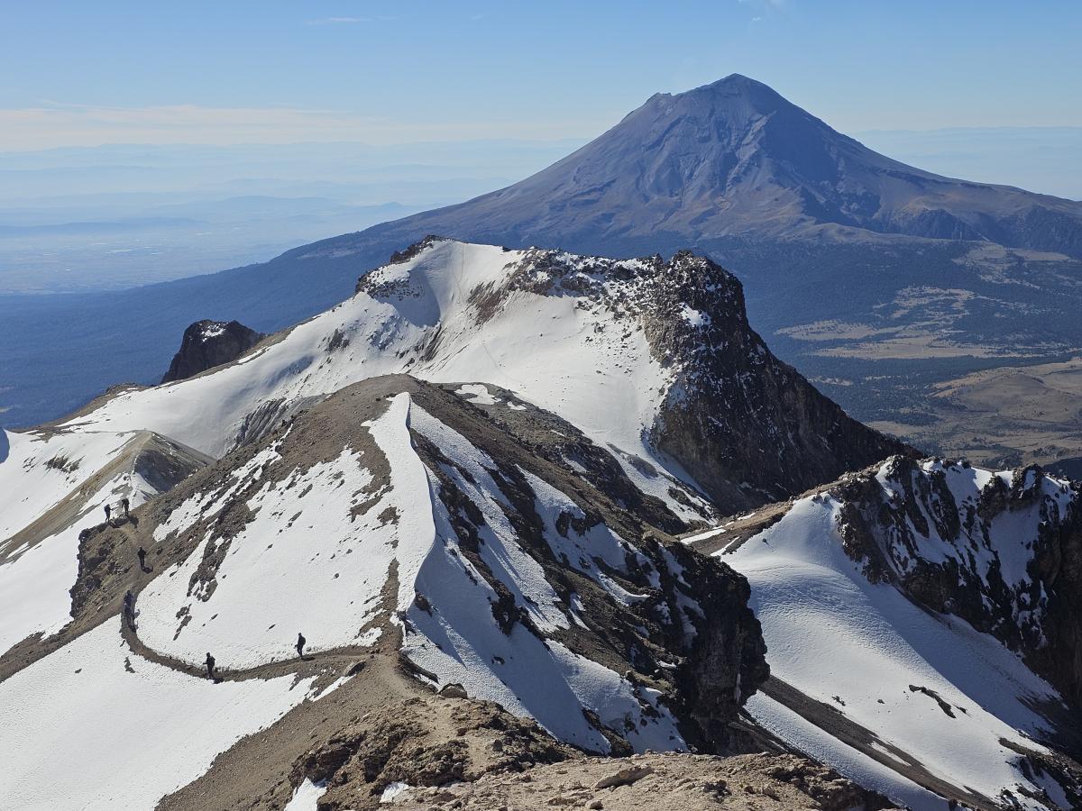 Kiedy z aparatami w rękach zjawiamy się na hotelowym tarasie, swoją strzelistą sylwetką od razu przyciąga uwagę, zresztą jakby nie było to druga co do wysokości góra Meksyku. Wyższą o 210 metrów jest Orizaba, która zresztą stanowi główny cel naszej wyprawy, choć aklimatyzację postanawiamy zrobić na innym szczycie. Wybór pada na wspomniany na początku Iztaccihuatl. Jest on wygasłym wulkanem, więc ograniczeń nie wprowadzono, a wysokościowo też jest całkiem honorny. Licząc 5230 m n.p.m. zajmuje w Meksyku prestiżowe miejsce trzecie, a biorąc pod uwagę wszystkie góry całej Ameryki Północnej, jest na pozycji piątej.