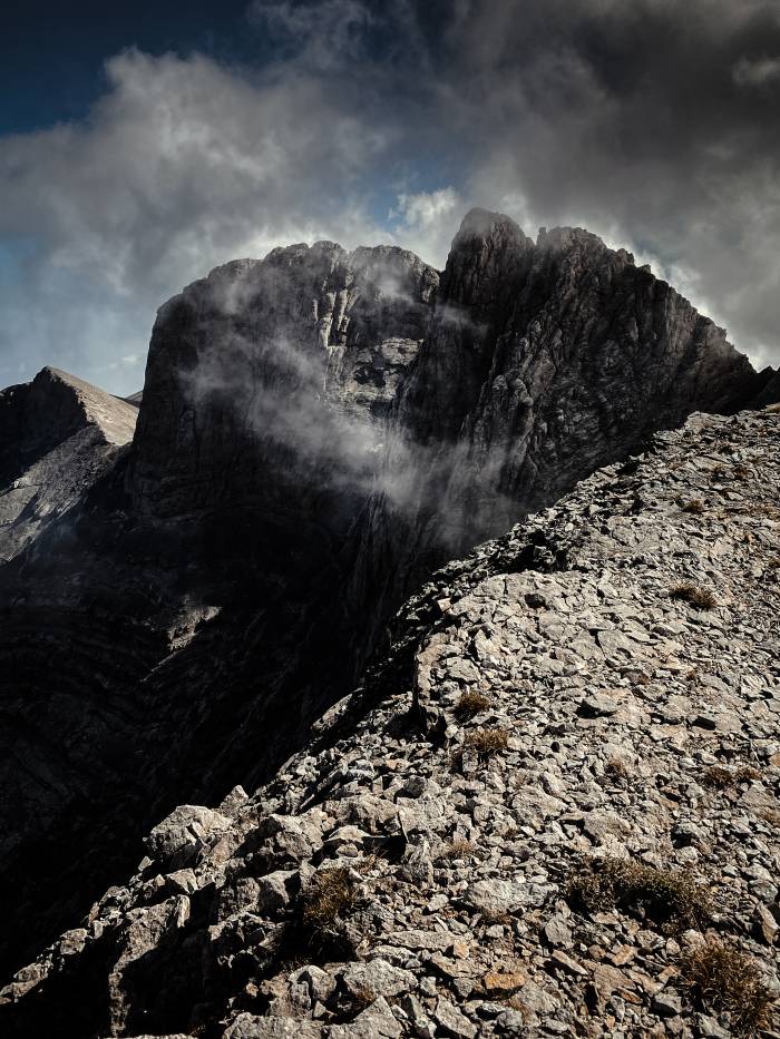 Ale kiedy wszedłem do jadalni schroniska im. Jososa Apostolidisa i za oknami zobaczyłem bezchmurne niebo, obudziłem się w jednej sekundzie. Otworzyłem drzwi i stałem na progu najwyżej położonego schroniska w tej części świata (2697 m n.p.m.). Po lewej, hen w dole, nad Morzem Egejskim, zaczynało wznosić się krwistoczerwone słońce. Z prawej miałem cel dzisiejszej wyprawy - siedzibę bogów, wystrzeliwującą z kamienno-trawiastych połonin, niczym grzebień na głowie kazuara.