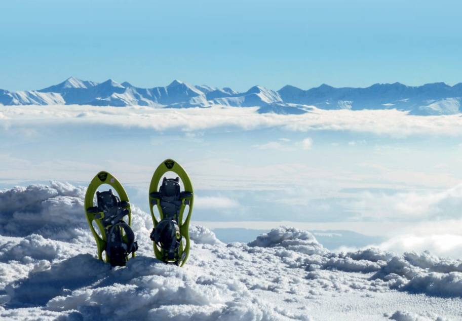 Teraz na graniowym odcinku jedyną uciążliwością jest wąska w tych warunkach ścieżka i zakryte śniegiem dziury w kosówce. Dlatego marsz po cudzych śladach wydaje się koniecznością. Gdy więc pokonuję pierwszy fragment podejścia, decyduję się na wykorzystanie ekwipunku, który dodał mi kilogramów na podejściu. Zakładam rakiety śnieżne. Szybko reguluję paski, odpowiednio ustawiam trzymanie pięty i posuwistym krokiem ruszam między choinki, a zmrożony śnieg delikatnie opada pod moim ciężarem. Dzięki rakietom nie zapadam się, swobodnie posuwając do przodu po grubej warstwie śniegu. Nie muszę już lawirować wąską i krętą linią szlaku. Nie ogranicza mnie ścieżka, a jedynie kierunek – od tyczki do tyczki i ósemki wokół pojedynczych drzew ledwo wystających ze śniegu.