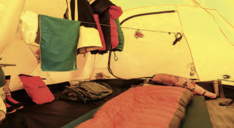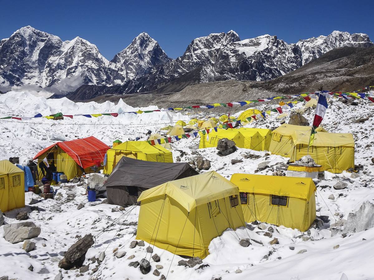 Żadnych budynków w bazie nie ma. Z jednej strony chodzi o względy ekologiczne, z drugiej pragmatyczne – na pracującym, wciąż zmieniającym układ lodowcu, i tak by nic na stałe nie przetrwało. Za to namiotów jest mnóstwo, bo każdy wspinacz dostaje lokum tylko dla siebie (wyżej u góry już tak dobrze nie jest). Standardem jest, że są już w nich materace, choć coraz więcej obozów zapewnia nawet łóżka, dywaniki, szafeczki, oświetlenie i ogrzewanie (dotyczy najbardziej kosztownych wypraw).